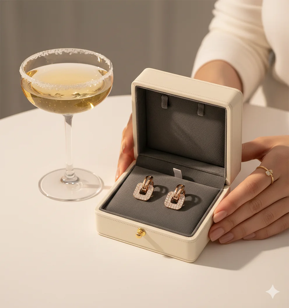 Сцена для продаж - Серьги (Причёска строгая, волосы гладко зачёсаны назад)