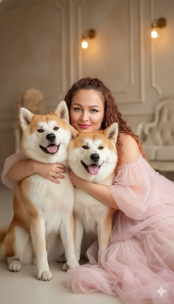 Окунитесь в атмосферу тепла и искренних эмоций со стилем «Нежность с акитами». Эта нейрофотосессия создана для тех, кто ценит романтику и эстетику домашнего уюта. Нейросеть мастерски сочетает ваш образ с грацией двух великолепных собак породы акита-ину, создавая гармоничный и добрый кадр. Пудрово-розовое платье из воздушной ткани добавляет легкости и подчеркивает женственность.